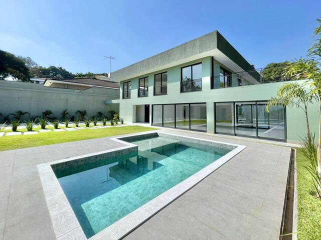 - Portas e janelas em alumínio preto e vidro com persianas elétricas nos quartos.